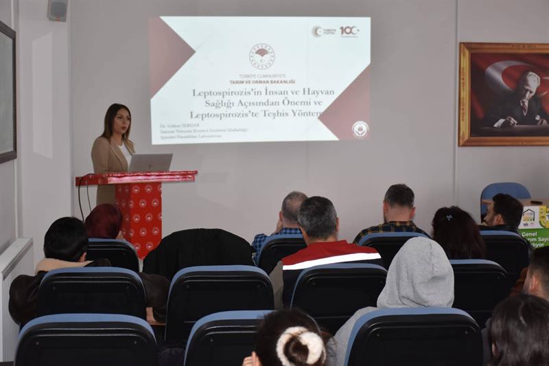 Nakledilebilir Süngerimsi Beyin Hastalıkları (BSE, FSE, Scrapie) ve beyin numunesi alımı, Kırım Kongo Kanamalı Ateşi (KKKA), Koyun Keçi Vebası (PPR) hastalığı ve numune alımı ile mihrak araştırması, Leptospirosis’in insan ve hayvan sağlığı açısından önemi ve teşhis yöntemleri ile atığa sebep olan viral, paraziter ve bakteriyel hastalıklar konularında eğitim verilmiştir.